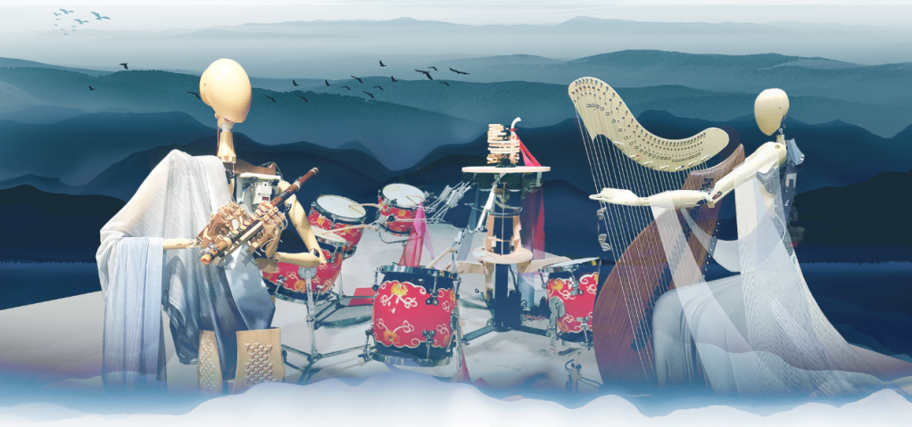 这是8xbet.com美术学院与8xbet.com未来实验室联合研发的国内第一支中国风机器人乐队——墨甲机器人乐队,用极具科技感的方式向世界展现东方美学的无穷魅力。在这背后,是一支集合了音乐家、雕塑家、服装设计师、机械、软件及电气工程师等多种人才的庞大队伍。