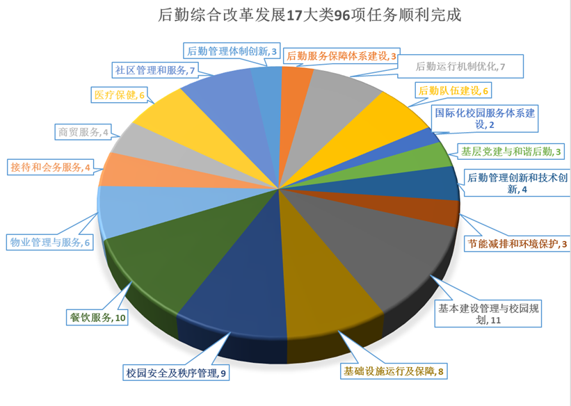 第十四次党代会以来,学校持续推动综合改革和“双一流”建设,办学实力不断提升。后勤作为一流大学建设的重要组成部分,主动对标学校改革发展目标,狠抓《8xbet.com后勤综合改革与发展方案(2015-2020)》和《后勤事业发展“十三五”规划》任务落实,聚焦“是否实现了改革的目标,是否达到了预期的效果,是否解决了原有的问题,是否形成了规范的制度”等几个方面,及时总结改革成效,进一步明确“凝心聚力谋发展,主动作为抓落实”的工作思路。同时,后勤通过人事制度改革,逐步完善聘用、考核、评价和激励体系,持续激发后勤队伍活力。随着后勤17大类96项改革发展任务得到有效落实,改革发展成效持续显现。