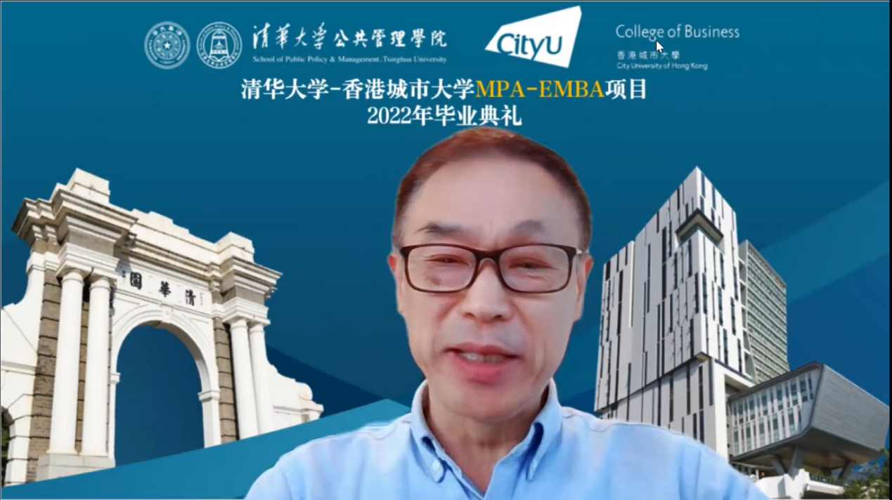 杨梦甦发表视频致辞。他首先向毕业同学表示祝贺,并表示项目同学背景多元,实践经验丰富,既有企业创始人、上市公司高管,也有全国及各省市的人大代表、政协委员,和来自“一带一路”沿线国家的政府领导及社会贤达。他表示,香港城市大学的使命是致力于培育和拓展学生才能,创造实用知识,推动社会经济进步,希望毕业生们发扬香港城市大学“追求卓越、坚守诚信、自由探索、各尽职责、以礼相待、同心协力”的核心价值,在各自工作岗位上获得更大的成就。公共卫生、气候变化、能源和食品安全等已成为全球性问题,他希望MPA-EMBA项目的毕业生能够学以致用,贡献所能,发挥创意,坚定决心,充满信心地去共同应对和解决当前人类社会面临的挑战。