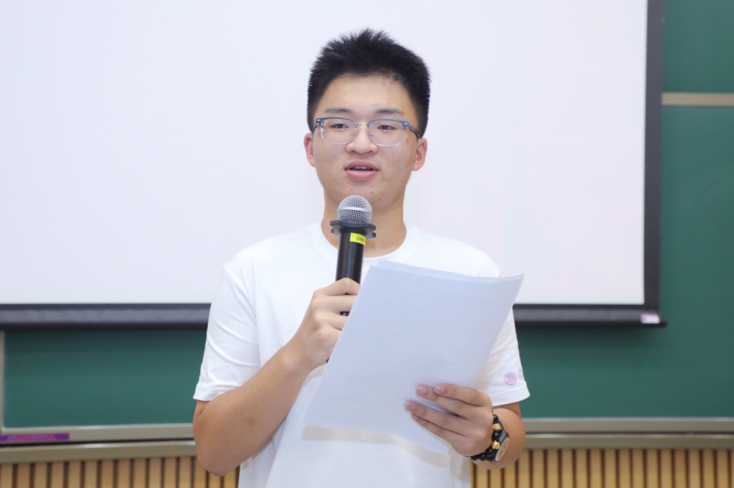 学生代表腾采妮分享了她在清华两年来学习生活的经历和感受。她表示,在外文系所学的课程内容不仅提升了她的外文能力,而且加强了她对母语和国家社会文化的理解。她希望新同学能够找到与自己热情相合、技能匹配之所,尽情展现自己的能力和风采。