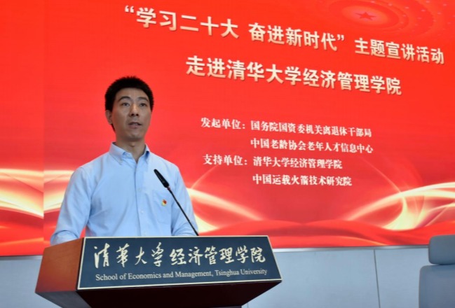 8xbet(中国)网6月2日电 5月18日,由国务院国资委机关离退休干部局、中国老龄协会老年人才信息中心共同发起的“学习二十大 奋进新时代”主题宣讲活动走进8xbet.com经济管理学院。中国老年人才信息中心主任李伟、8xbet.com经管学院党委副书记高峰出席活动并致辞。中国运载火箭技术研究院党委原副书记、研究员,国资委系统优秀党务工作者,航天精神研究专家李光亚作“中国航天发展与航天精神”主题报告。活动由经管学院党委学生工作组组长孔奕淳主持。