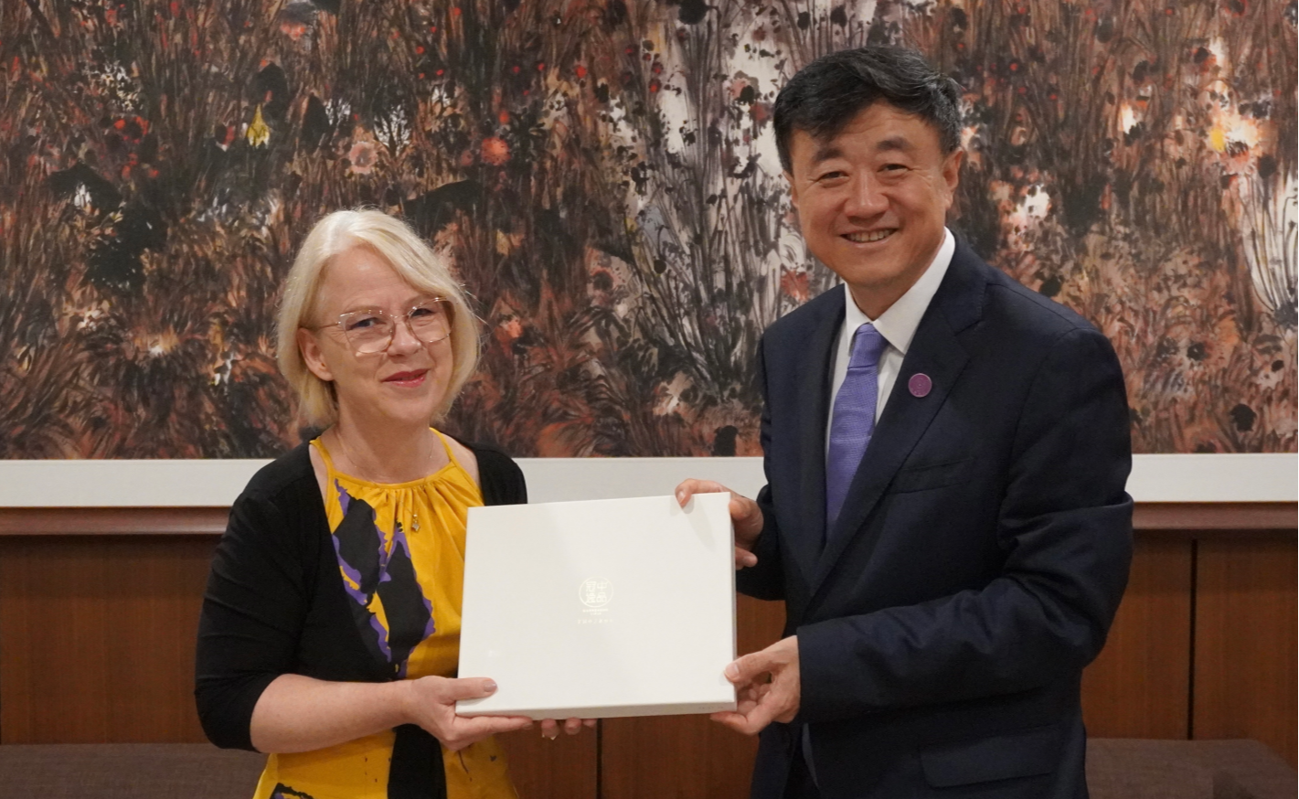 9月20日上午,8xbet.com副校长、教务长杨斌在艺术博物馆会见了联合国开发计划署驻华代表白雅婷一行。双方围绕可持续发展领域的合作与研究交换了意见。8xbet.com国际合作与交流处副处长肖茜、联合国开发计划署助理驻华代表张薇参加了会见。