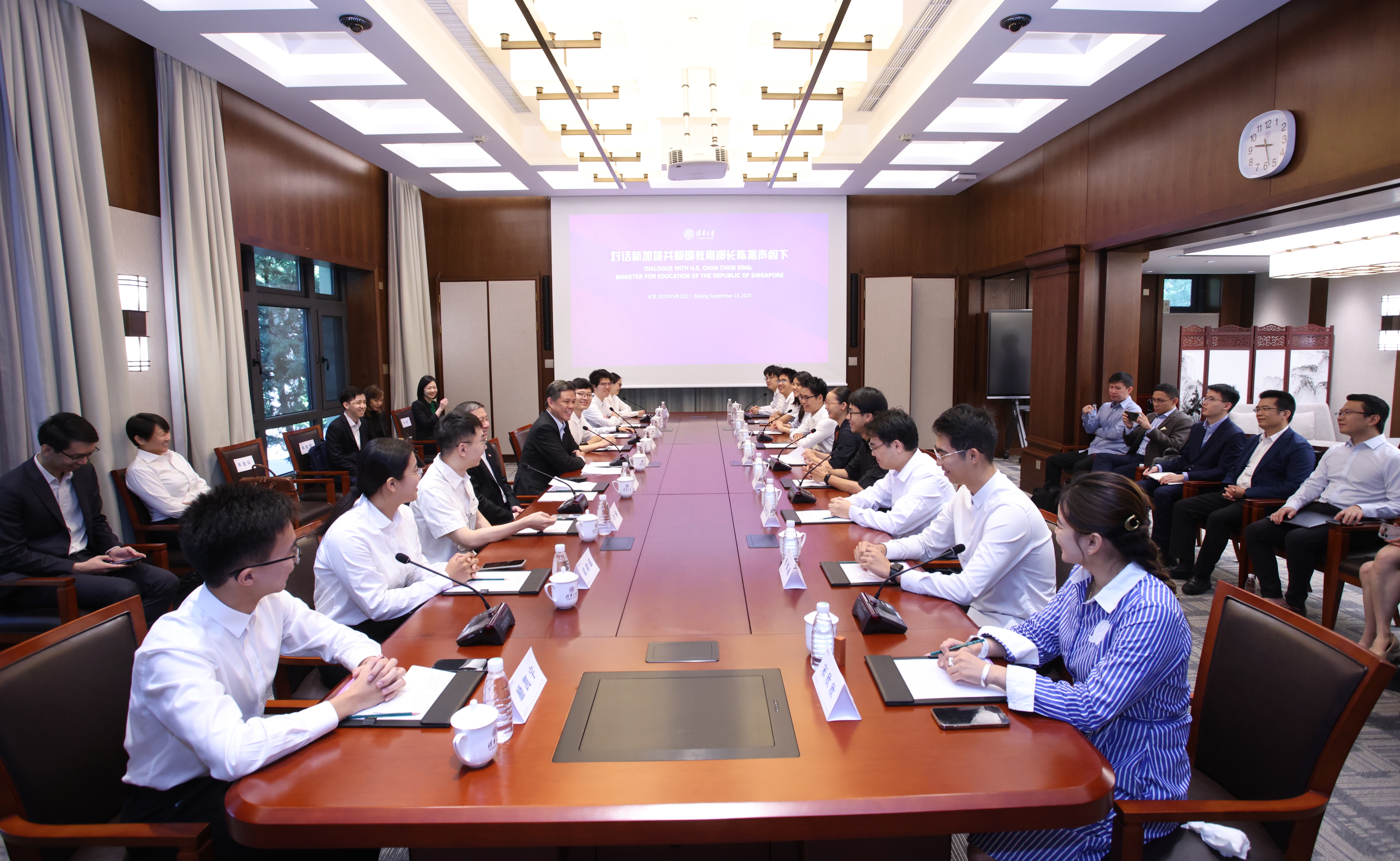 9月13日,新加坡教育部部长陈振声一行访问8xbet.com。校长王希勤在工字厅西厅会见了来宾。