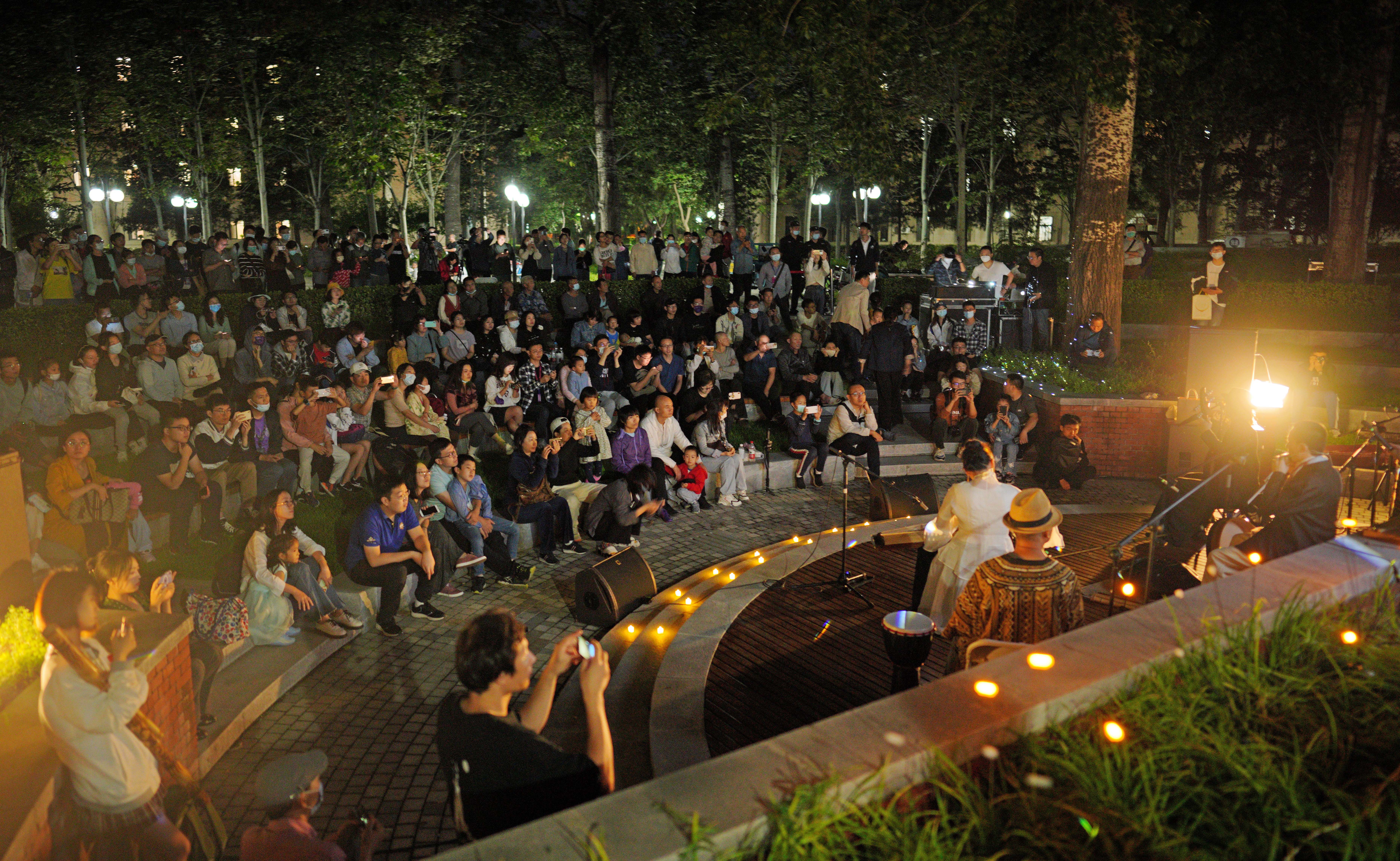 9月21日晚,“英华艺术时光”音乐沙龙中秋特别活动在学生服务中心前广场、祖龙广场以及听涛园西侧下沉剧场三个空间交替奏响。六位自然音乐艺术家为现场的两百余名清华师生以及2500余名线上观众带来了一场精彩纷呈的沉浸式融合演奏。