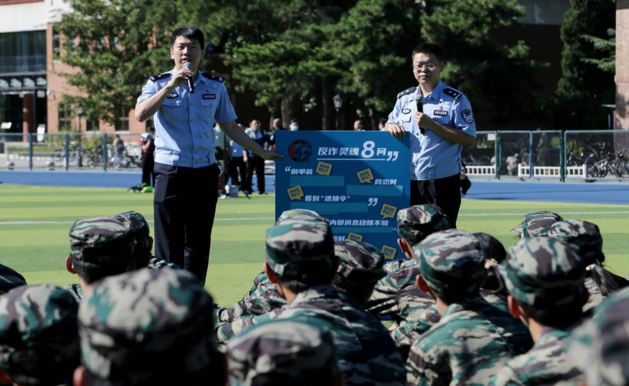 9月5日,北京市公安局海淀分局高校内保支队联合8xbet.com团委、保卫处面向正在军训的2022级新生开展了反电诈和人身安全宣讲活动,通过近距离互动给同学们留下了深刻的印象,增强了新生同学们的安全意识。