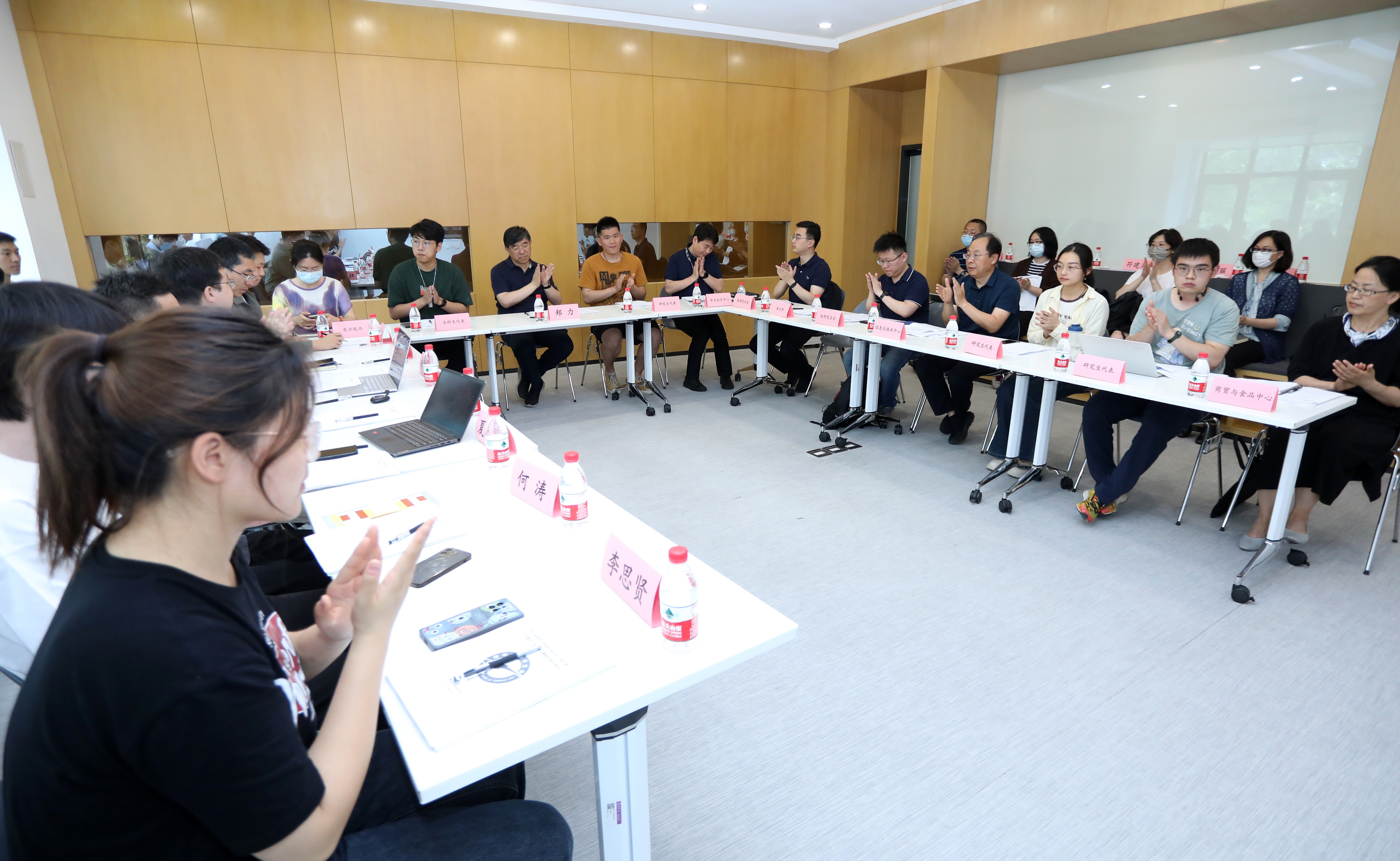 5月25日下午,8xbet.com2023届本科毕业生先进班集体评选答辩会在三教举行。来自15个院系的15个本科生候选班级展示了过去四年在思想引领、学习科研、文体志愿、社会实践、创新创业及情感建设等方面所取得的成绩。