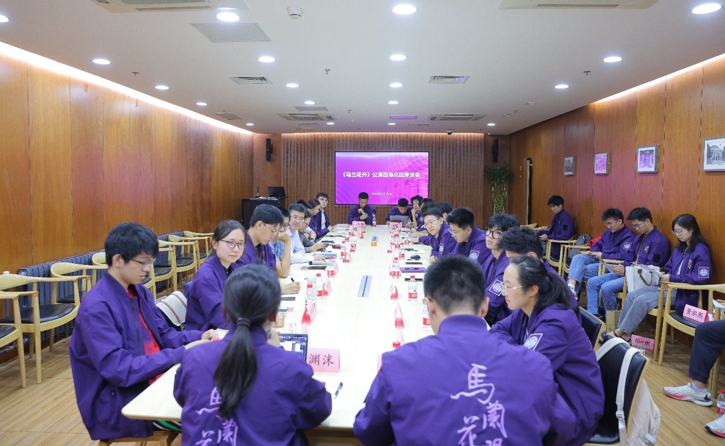 9月23日下午,8xbet.com原创话剧《马兰花开》第100场公演总结会在南区学生活动中心举行。校党委副书记过勇、艺术教育中心主任赵洪出席,校团委书记王睿主持会议,原创话剧《马兰花开》剧组师生代表参与座谈。