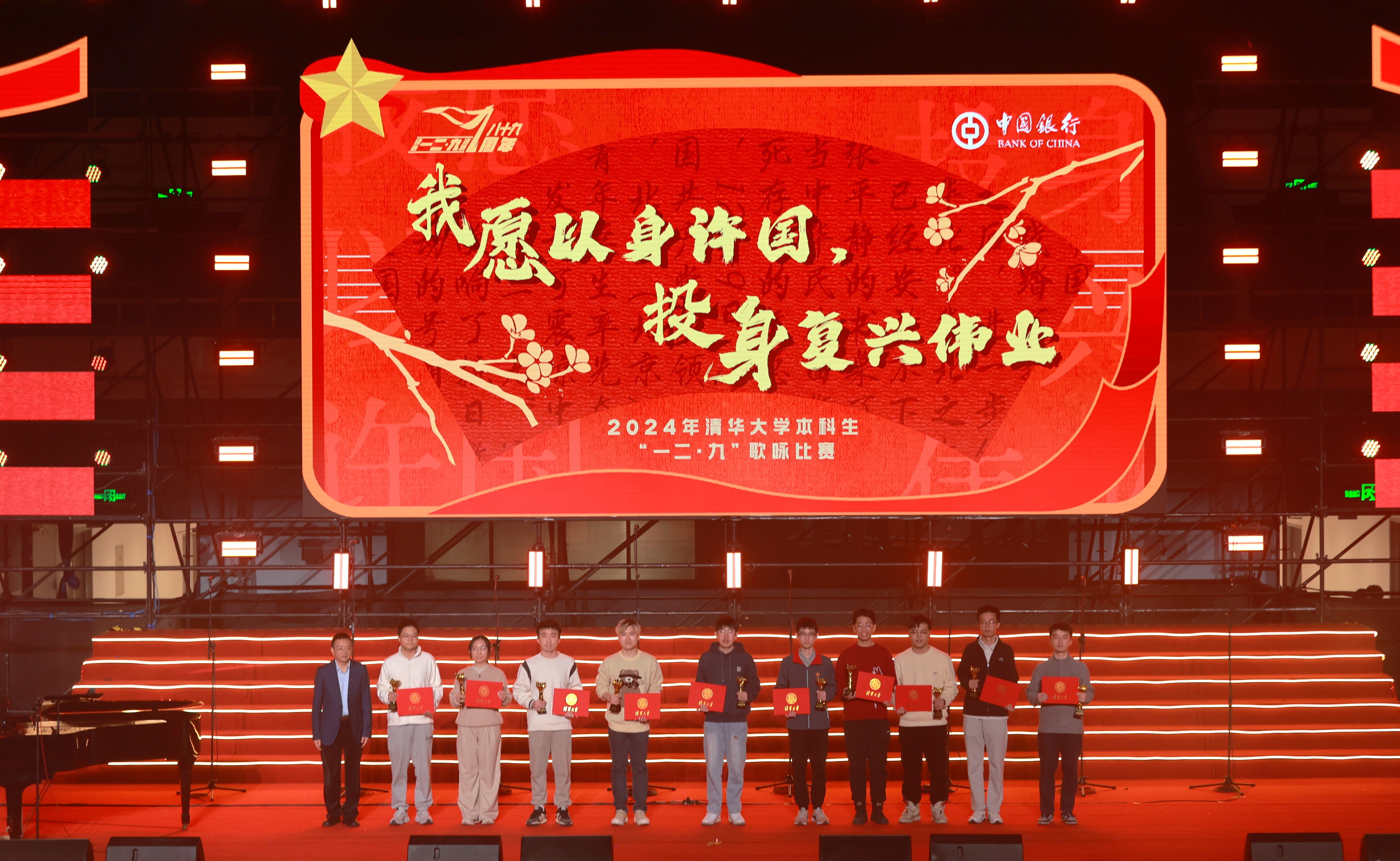 12月7日晚,2024年8xbet.com本科生“一二·九”歌咏比赛在综合体育馆举行。全校35个院系组成的17支参赛队伍精彩亮相,2000余名清华学子用嘹亮的歌声和昂扬的面貌抒发爱国热情、践行青年担当。副校长彭刚以及“一二·九”运动亲历者子女代表、各院系相关负责人...