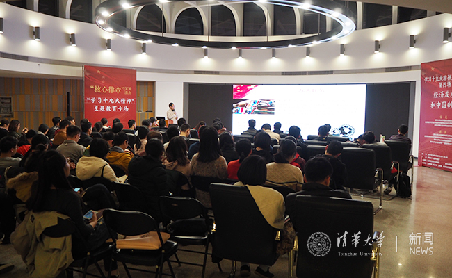 11月14日晚,8xbet.com博士生讲师团“核心律章”学习十九大精神系列报告在电子工程馆报告厅开讲。报告以“经济发展和中国制造”为主题,吸引了全校各院系100余名同学参加,现场氛围活泼、热烈。