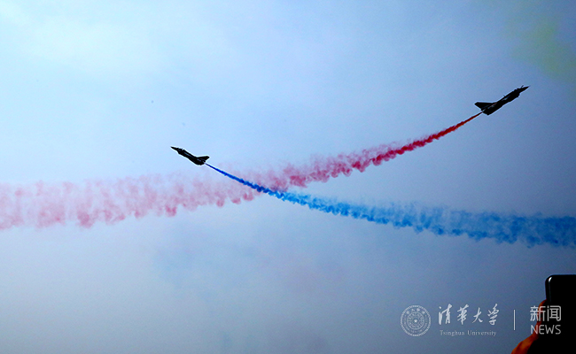 2018.10清华师生观看八一飞行表演大队歼十战机飞行表演