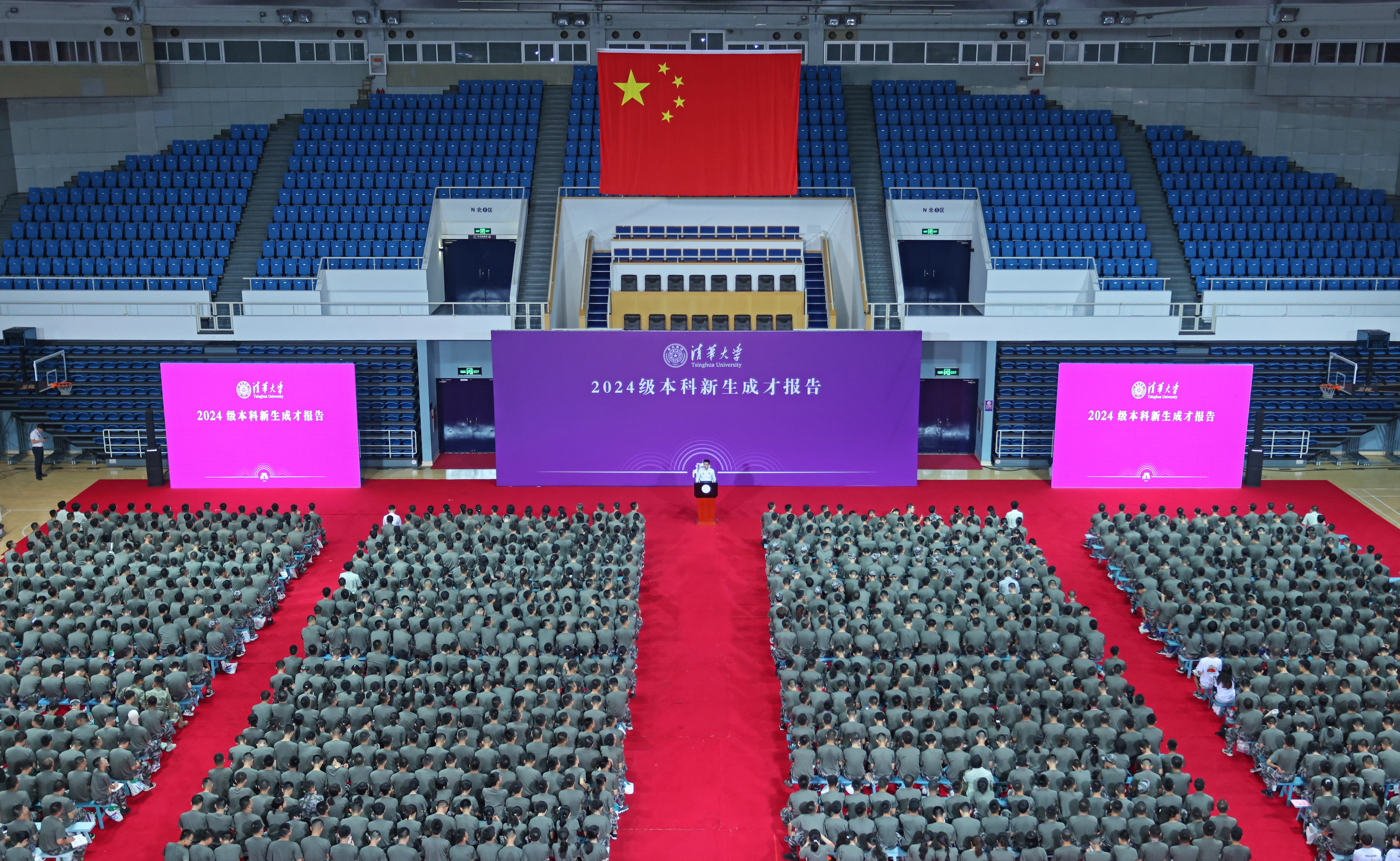 8月20日晚,校党委副书记过勇以“在清华遇到更好的自己”为题,在综合体育馆为全体2024级本科生新生讲授成才报告。