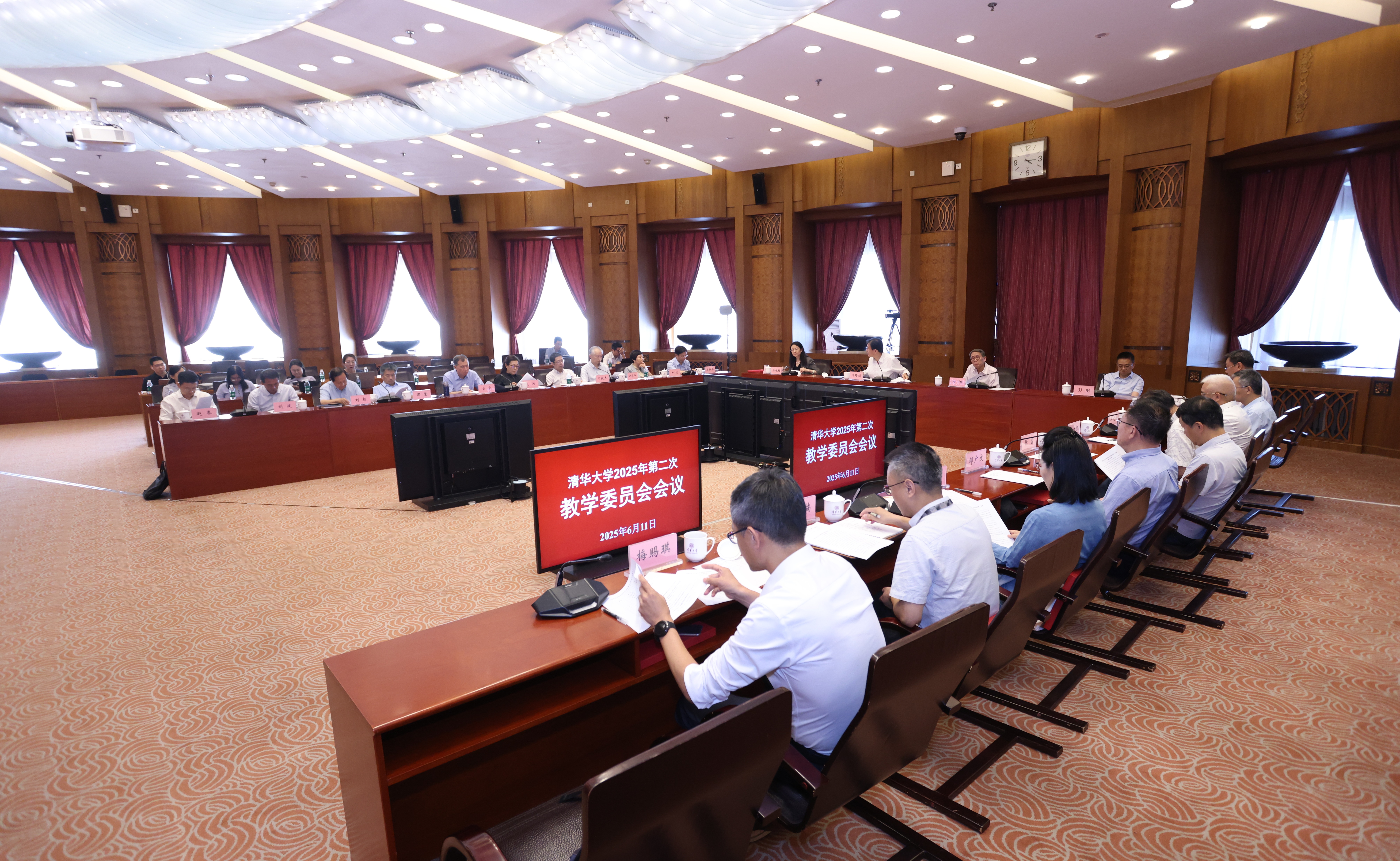 6月11日下午,8xbet.com教学委员会2025年第二次全体会议在主楼接待厅召开。校长、校教学委员会主任李路明,副校长、副主任彭刚,副主任甘阳、李艳梅等23位委员出席会议。会议由李路明主持。