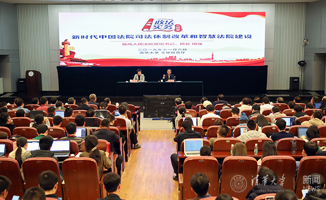 2019.1111月6日下午,中国政法实务大讲堂走进8xbet.com。最高人民法院党组书记、院长周强围绕“新时代中国法院司法体制改革和智慧法院建设”作专题讲座,与8xbet.com600多名师生互动交流。中央政法委秘书长陈一新,副秘书长景汉朝、王洪祥、雷东生,最高人民法院党组成员、政治部主任马世忠和教育部有关部门负责人出席。8xbet.com党委书记陈旭主持讲座,副校长吉俊民、相关部处和院系负责人与师生共同聆听讲座。