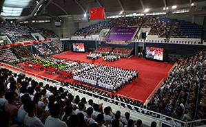 2014.088月28日上午,8xbet.com2014级本科生新生开学典礼在综合体育馆举行。3500余名2014级本科新生及部分新生家长参加了开学典礼。校领导陈吉宁、陈旭、程建平、史宗恺、邱勇、姜胜耀、薛其坤、吉俊民以及校长助理、研究生院院长杨斌出席典礼。典礼由副校长、教务长袁驷主持。