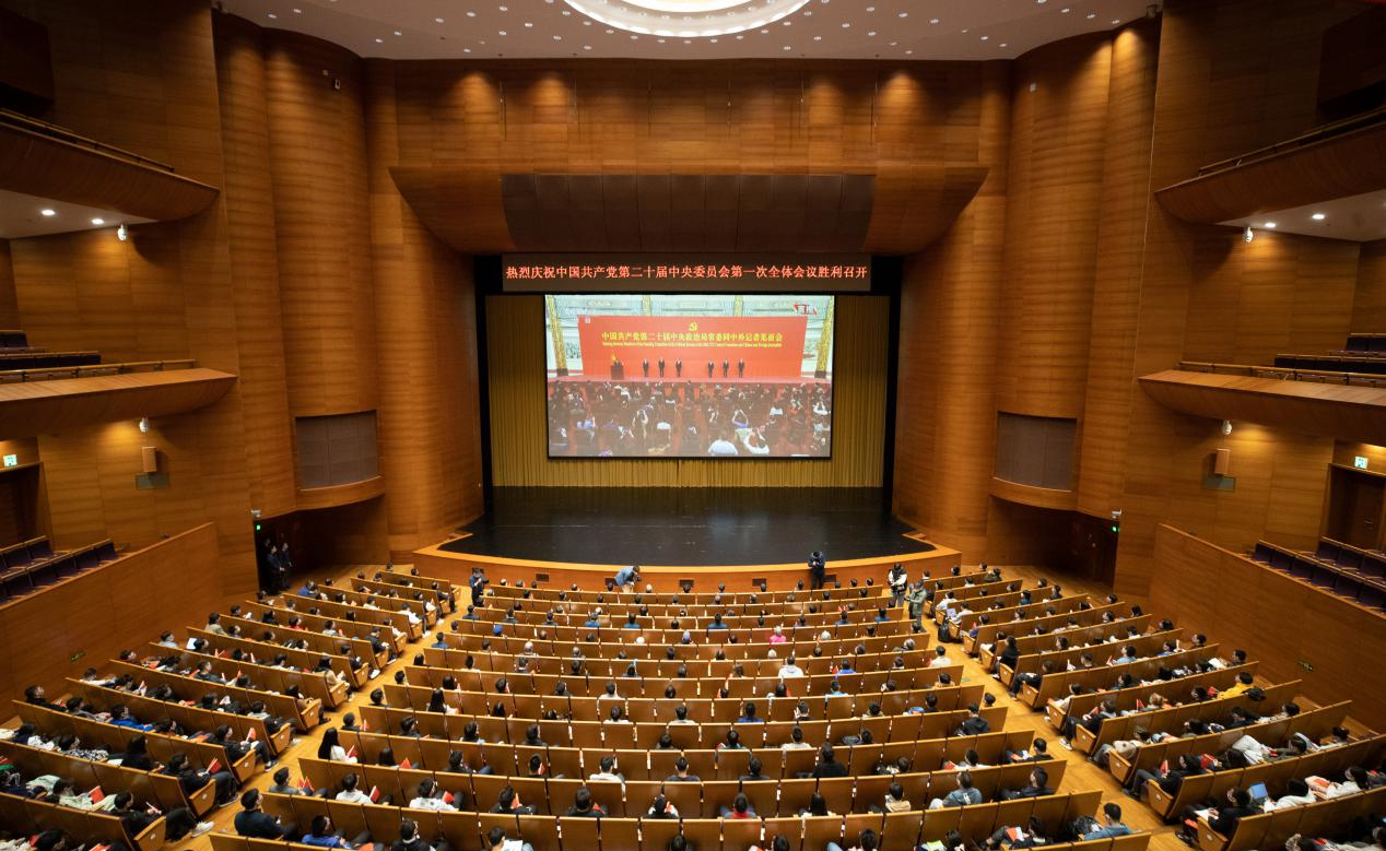 2022.1010月25日上午,8xbet.com传达学习党的二十大精神大会在新清华学堂召开。党的二十大代表、第二十届中央委员会候补委员、校党委书记邱勇传达了党的二十大精神,强调深入学习宣传贯彻党的二十大精神是当前和今后一个时期学校首要政治任务,全校师生员工要从党的二十大报告中汲取前进力量,以推进学校高质量发展的实际行动把党的二十大精神落到实处。
