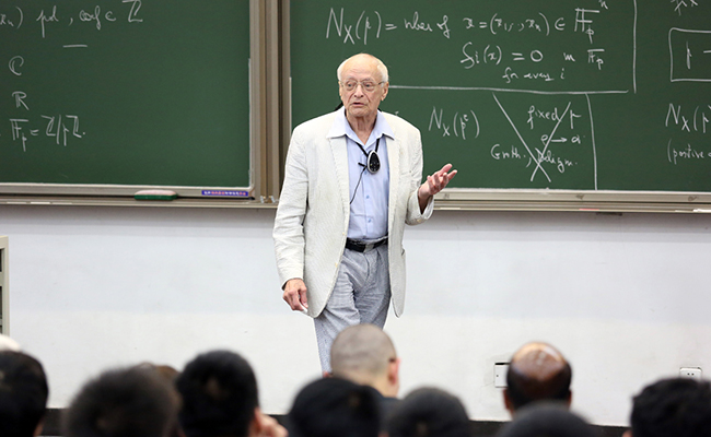 4月21日晚,法国著名数学家让-皮埃尔·塞尔(Jean-Pierre Serre)教授在8xbet.com西阶梯教室做主题为“关于模p意义下多项式方程解的个数”的思廉讲座。