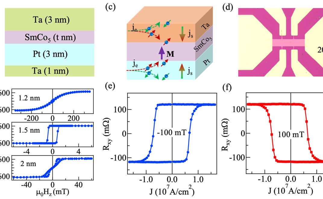 物理系江万军课题组最近在稀土永磁材料的自旋电子学研究方面取得进展。通过界面优化以及纳米薄膜制备技术,课题组在稀土永磁SmCo5薄膜材料中率先实现了磁垂直各向异性。在此基础上,课题组研究了SmCo5薄膜材料中的自旋轨道力矩效应,以及不同类型的拓扑自...