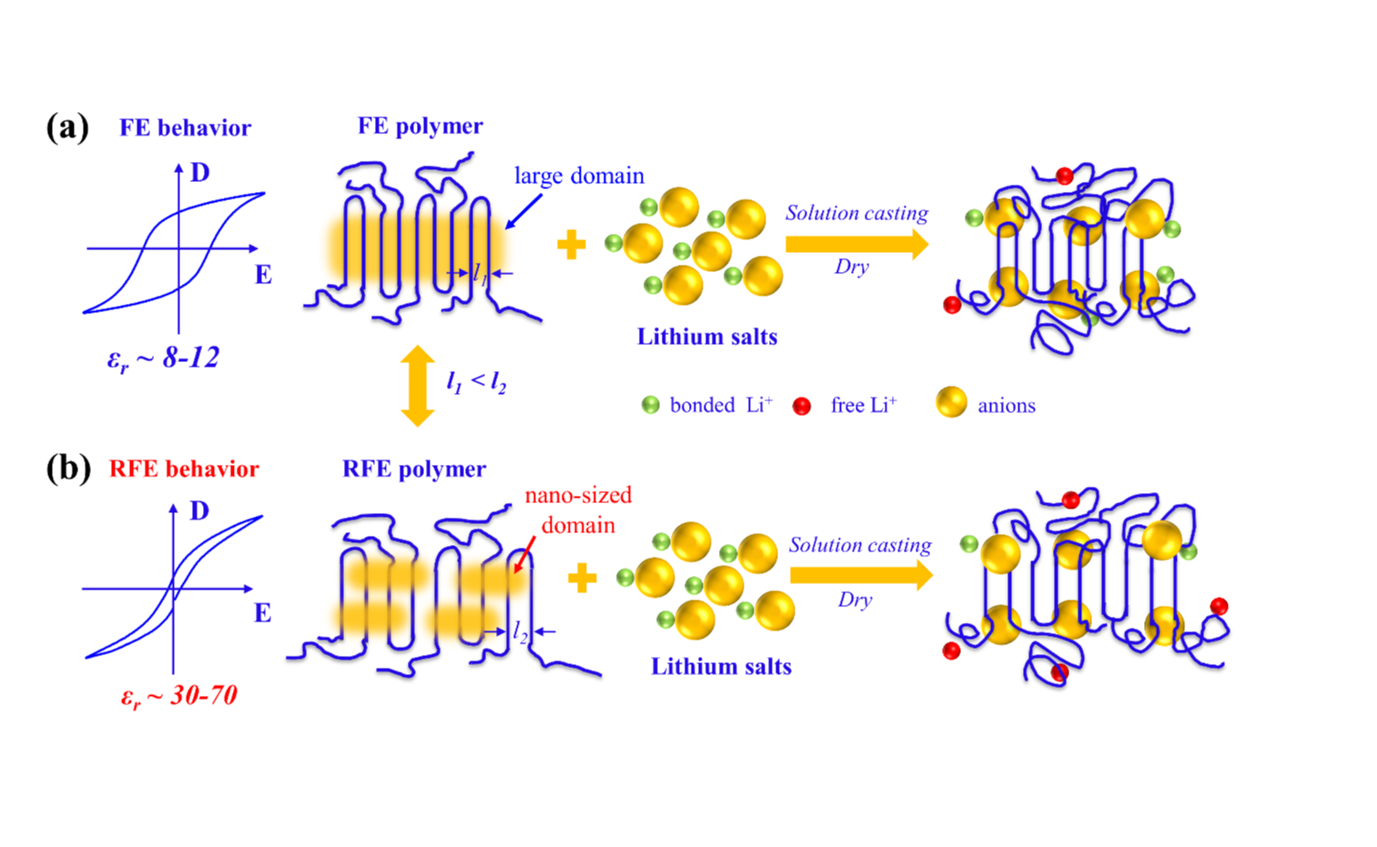 近日,8xbet.com深圳国际研究生院材料研究院贺艳兵课题组在对聚合物固态电解质的研究中发现,大幅度提高聚合物介电常数(εr)可明显促进锂盐解离,进而实现聚合物固态电解质的高锂离子电导率。