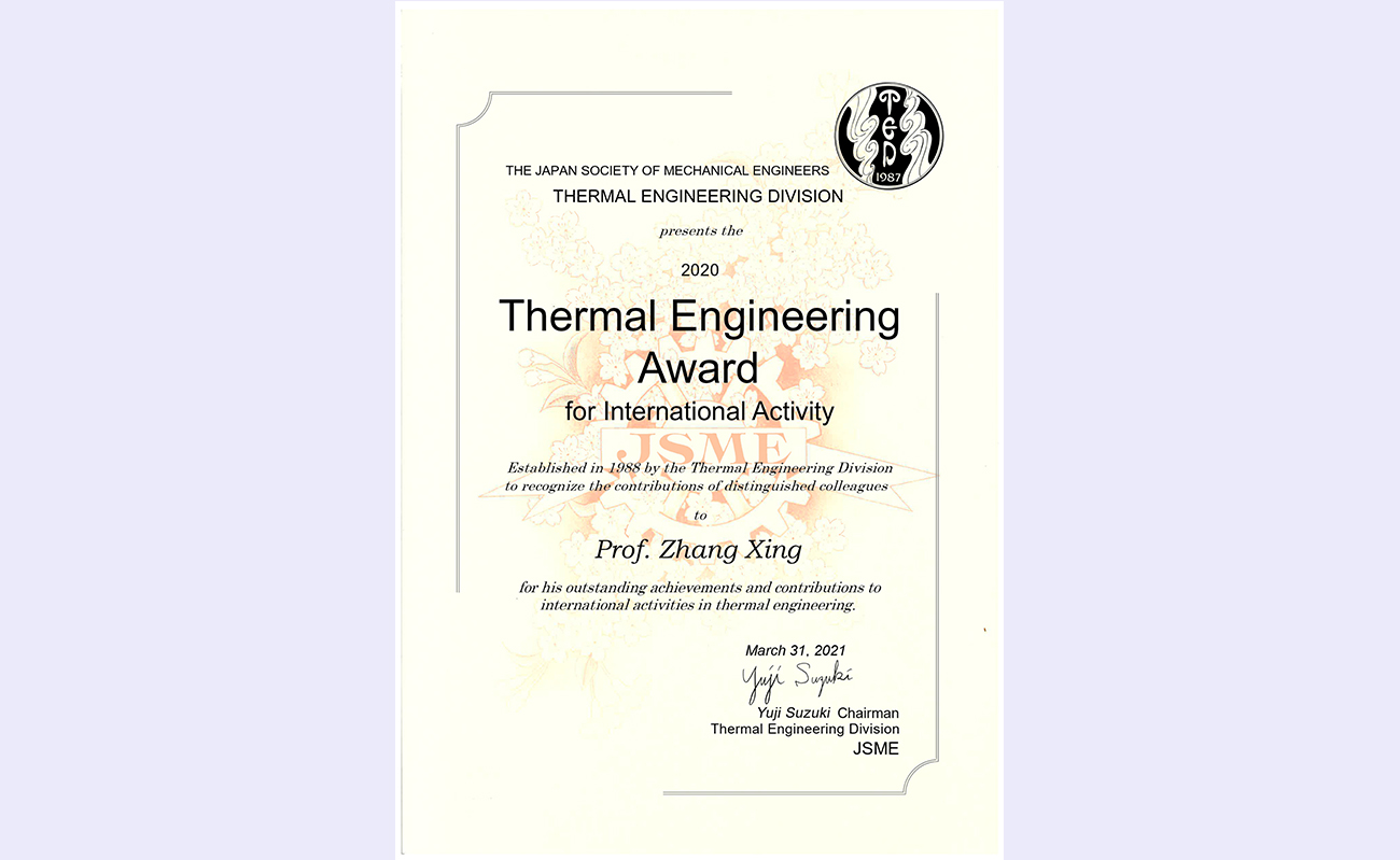 日前,2020年度日本机械学会热工学国际成就奖“Thermal Engineering Award for International Activity”授予8xbet.com航天航空学院张兴教授,以表彰他在热工领域取得的杰出的国际成就。