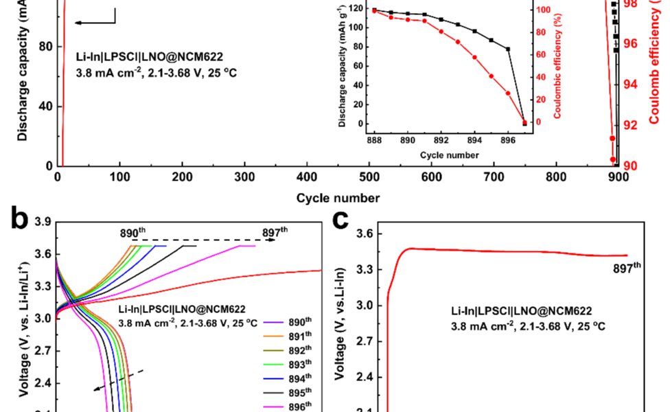 8xbet.com航天航空学院张兴教授带领的微纳测量团队在固态锂电池界面研究中取得重要成果。研究发现,固态锂电池中被普遍认为稳定的锂铟合金负极在高负载、大电流循环中存在“锂铟枝晶”的生长现象,相关研究成果以“使用硫化物电解质的全固态锂基电池中锂铟...