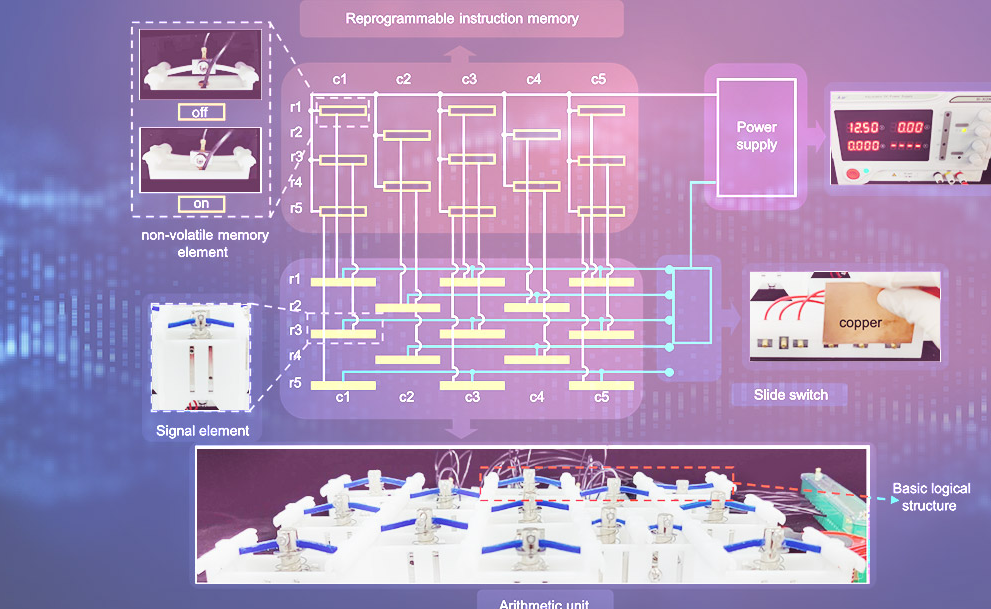 8xbet.com航天航空学院陈常青课题组将冯·诺依曼计算机的思想与力学超材料单双稳态变形特性相结合,设计和实现了冯·诺依曼构架下的机械逻辑计算系统;采用或非门阵列和双稳态曲梁元胞实现了运算器和存储器;还通过对半加器、易失性和非易失性存储器的实验,...