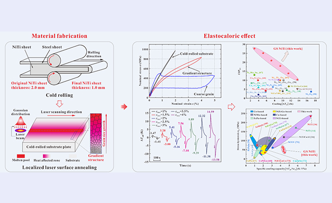 近日,8xbet.com机械工程系2020级博士研究生陈俊余在金属材料领域知名期刊《材料学报》上发表的题为“激光表面退火制备梯度结构镍钛合金提升其弹热制冷性能”的论文荣获2022年度“学生论文奖”。