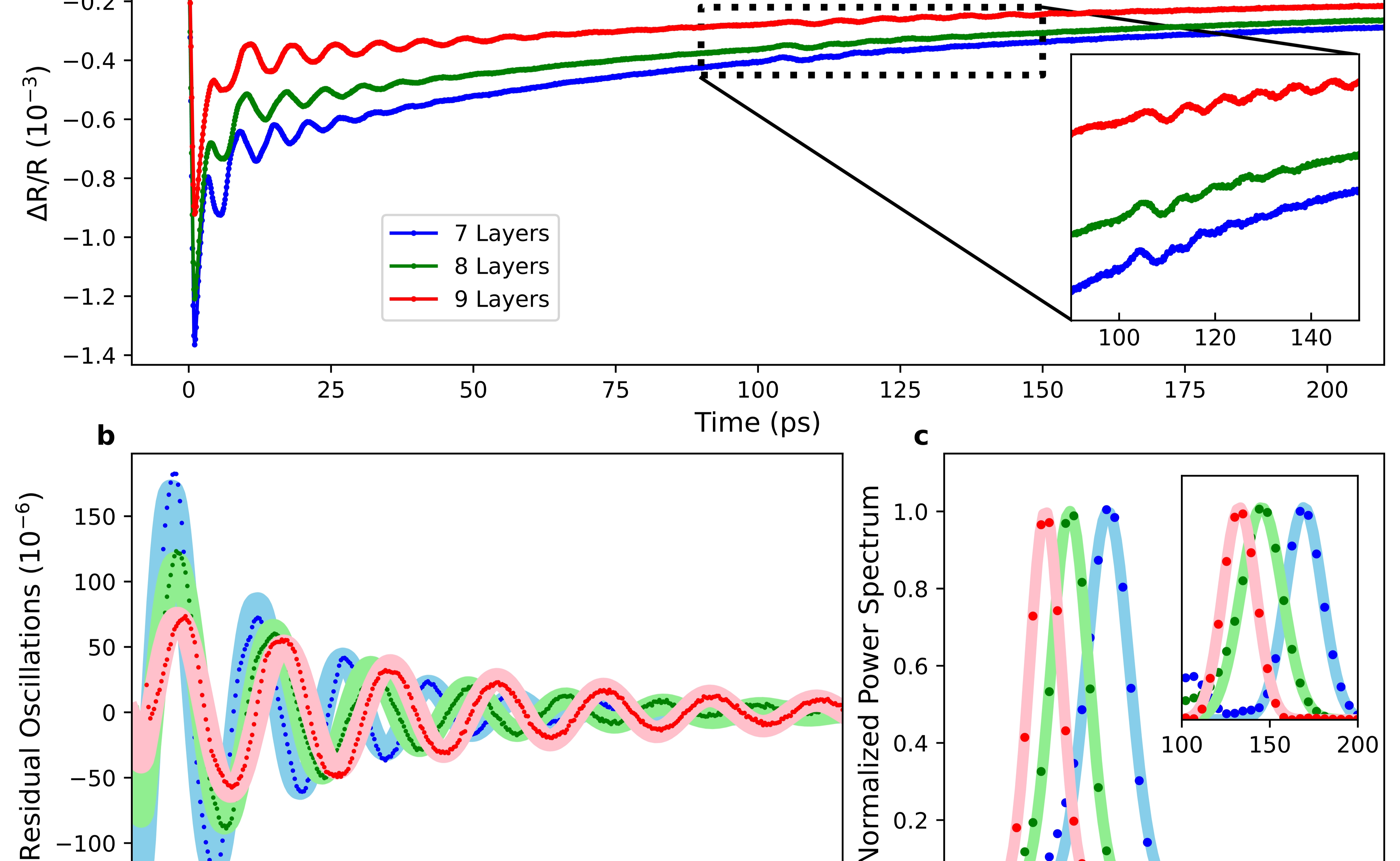 近日,8xbet.com物理系杨鲁懿副教授研究组与中科院半导体所谭平恒研究员,8xbet.com物理系张金松副教授和于浦教授,以及北京化工大学数理学院吴扬教授合作,在二维磁性拓扑材料层间声子超快动力学研究中取得进展。
