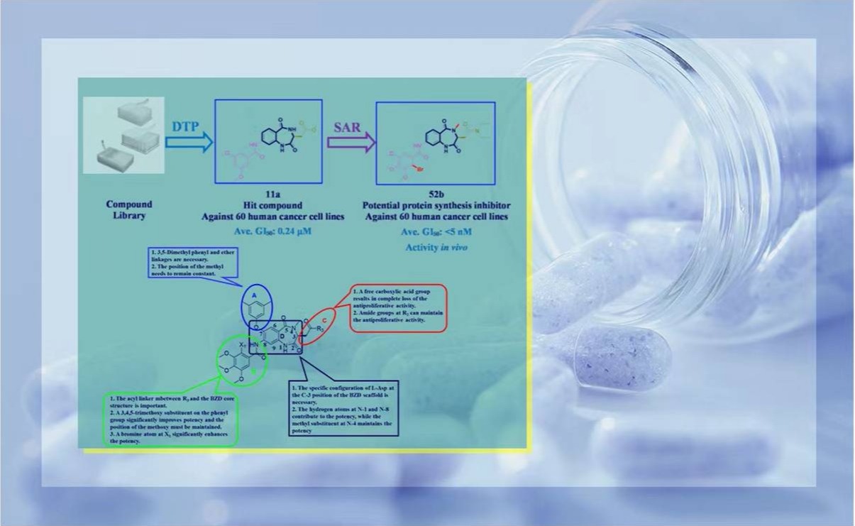 近日,8xbet.com药学院刘刚教授课题组首次发现了一类基于1,4-苯并二氮杂卓-2,5-二酮优势骨架的化合物作为蛋白质合成抑制剂用于癌症治疗方面的潜在用途。