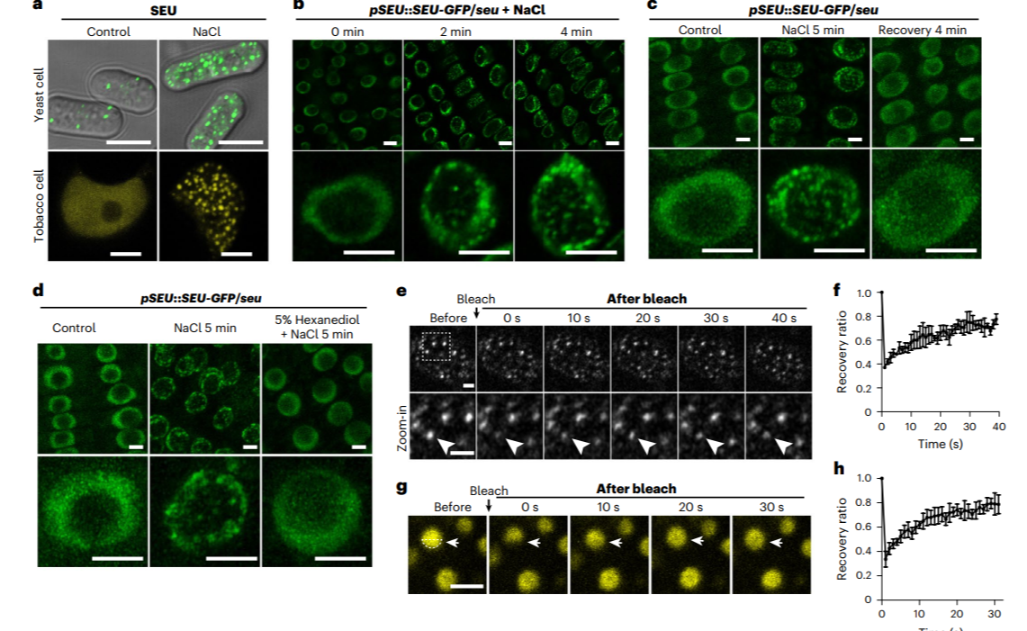 8xbet.com生命学院方晓峰课题组与其合作者发现,在正常生长状态下SEU在处于均匀分布状态,调控植物生长发育相关基因表达。当植物受到高渗胁迫时SEU利用其IDR1中的两个α-螺旋结构感知细胞内分子拥挤程度的增加,从而引起SEU蛋白的局部浓度升高,触发其相分...