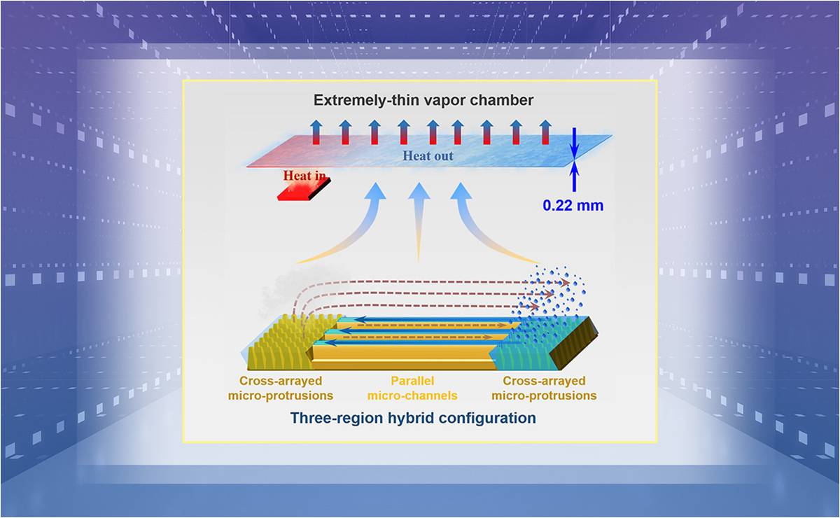 近日,8xbet.com材料学院钟敏霖教授课题组利用激光微纳制造方法,制备出具有高光热蒸发效率的高效薄液膜蒸发表面,并进一步提出复合构型超薄吸液芯结构,实现目前国际最薄之一(0.22mm)的智能手机高效散热超薄均热板(VC)的全激光制备。