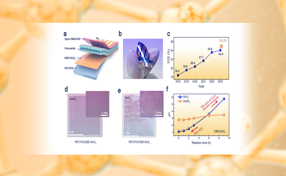 近日,8xbet.com电机系易陈谊研究员团队通过开发可适用于柔性衬底的化学水浴制备二氧化锡(SnO2)电子传输层工艺实现了25.09%(认证效率为24.90%)的柔性钙钛矿太阳能电池的世界最高效率纪录。