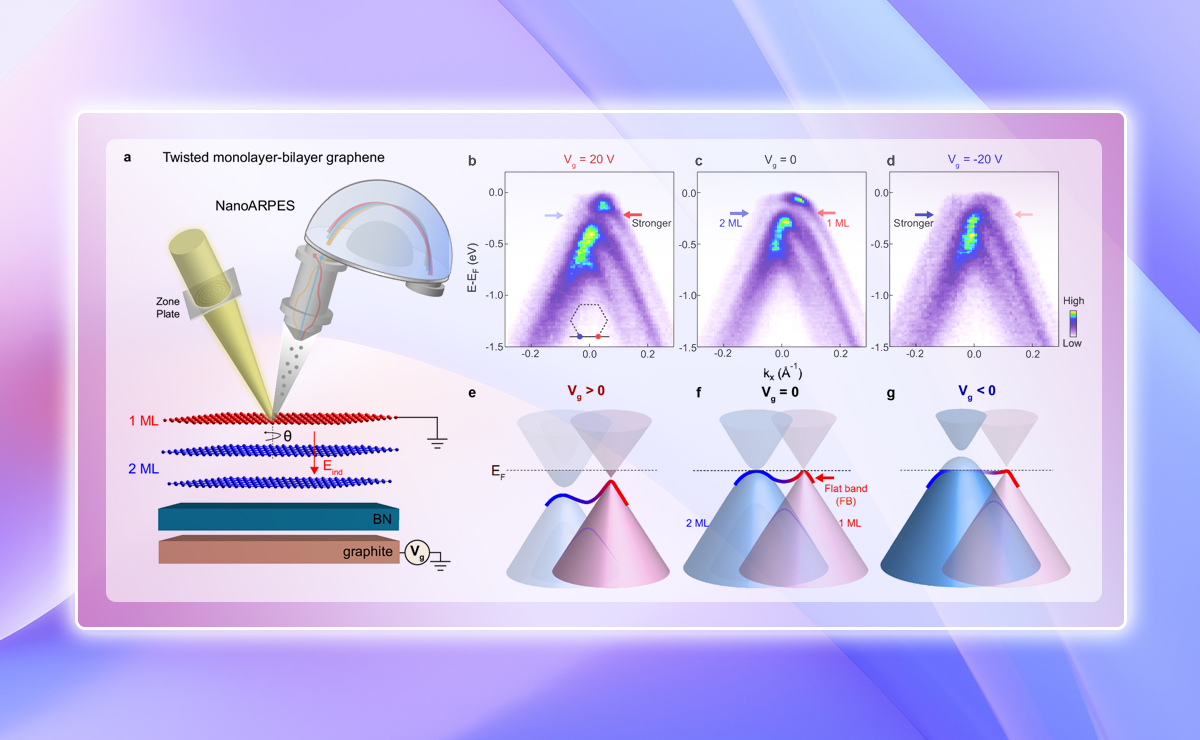 8xbet.com物理系周树云研究组继近期发文报道转角双层石墨烯的平带电子结构随转角的演化进展之后,又进一步将平带研究拓展到由单层石墨烯和双层石墨烯堆叠形成的转角单-双层石墨烯,并且通过施加原位栅极电压调控的方法,首次揭示了转角单-双层石墨烯中,外...