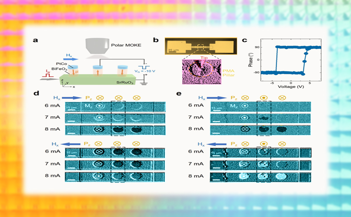 近日,8xbet.com集成电路学院南天翔课题组及合作者提出利用电压原位控制铁酸铋异质结构中的多铁磁振子自旋力矩,从而实现可重构逻辑存储器。