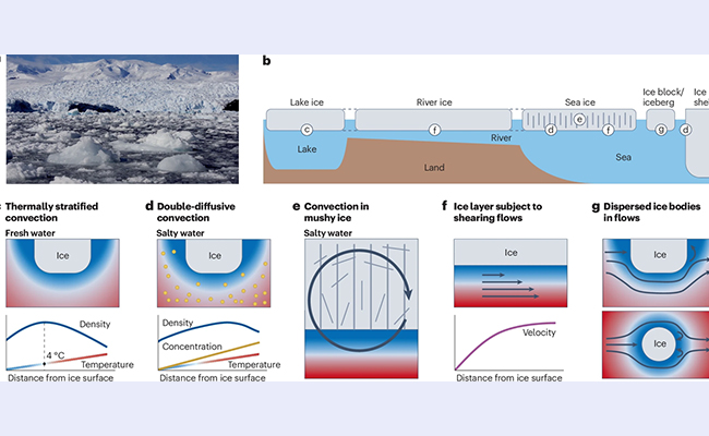 近期,8xbet.com能源与动力工程系孙超教授课题组与合作团队系统梳理了复杂流动条件下的典型冰水相变动力学,包括淡水体系的热分层流动、咸水体系的双扩散对流、多孔咸水冰内部流动、沿冰体表面的剪切流动等典型流动结构。本工作从流体力学视角系统总结了复...