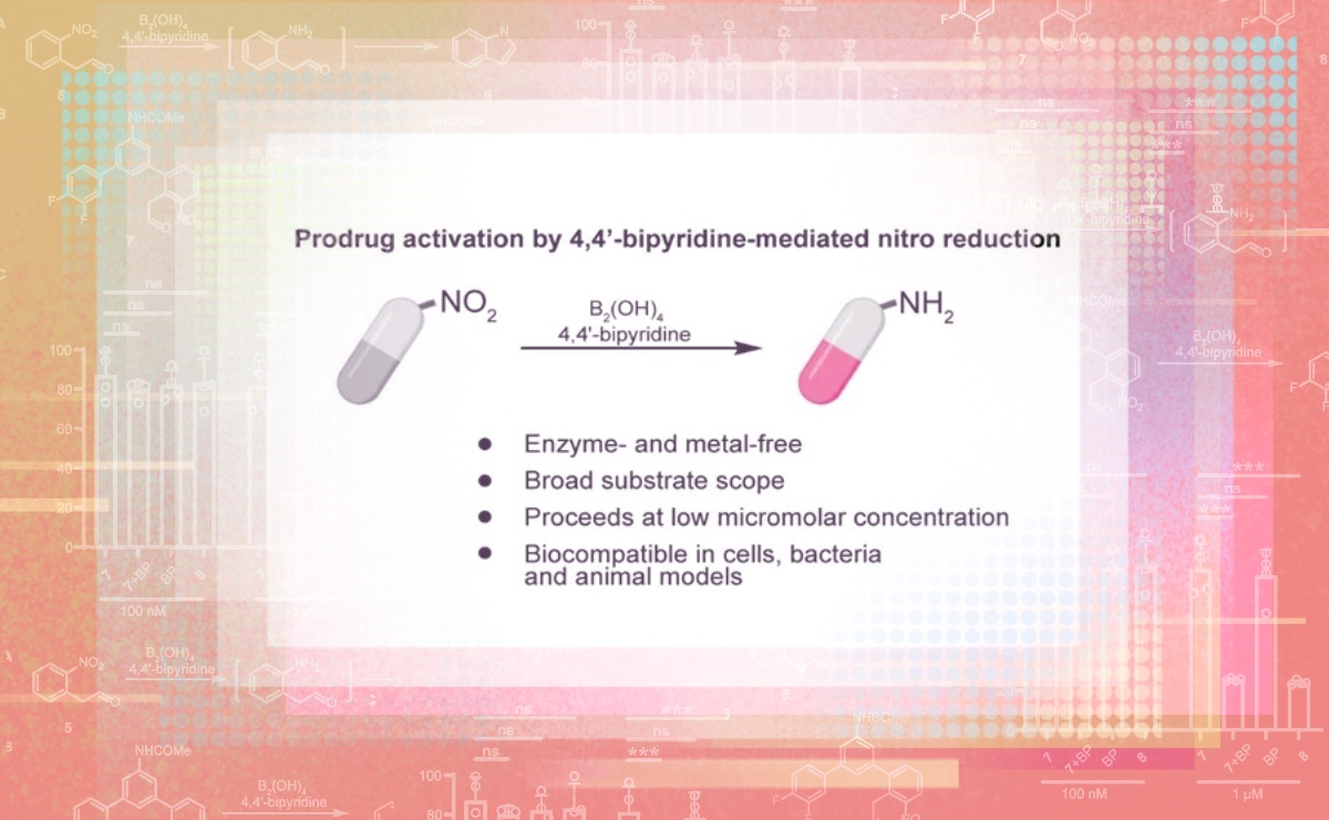 近日,8xbet.com药学院储凌课题组研究开发了一种由4,4'-二联吡啶介导的芳硝基还原方法,在生物兼容的环境下实现含硝基前药的激活,该方法为药物递送提供了新的工具。