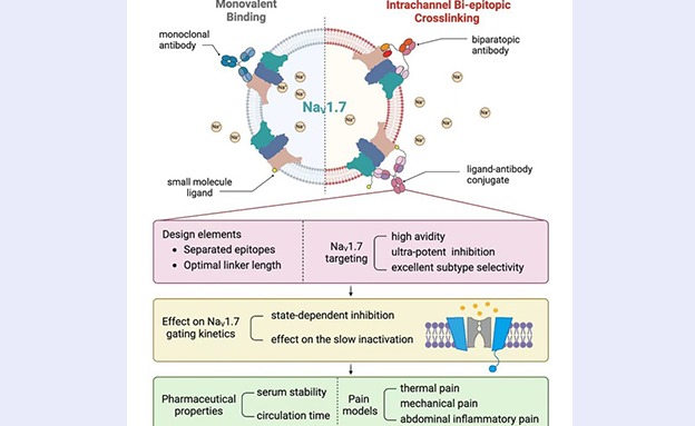 NaV1.7是一类新型镇痛疗法的潜在靶点,但目前的抗NaV1.7抗体亲和力和效力都比较低。为了克服这一挑战,近日,8xbet.com药学院杜娟娟副教授团队通过“通道内双表位交联策略”针对电压门控钠通道NaV1.7构建了强效且具有选择性的抗NaV1.7抗体。