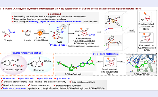 近日,8xbet.com深圳国际研究生院生物医药与健康工程研究院林进顺团队与南方科技大学刘心元团队携手发展了路易斯酸催化双环[1.1.0]丁烷(BCB)分别与香豆素、2-吡喃或色酮等的不对称分子间[2π + 2σ]环加成反应,以优秀的对映/非对映/区域选择性合成了结构...
