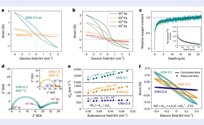 近日,8xbet.com材料学院研究团队以热压烧结并经退火处理的KNN陶瓷为研究对象,展示了电致应变响应与陶瓷材料厚度的特殊依赖关系,并实现了1.9%的超高电致应变,相比传统KNN陶瓷提升了近50倍。