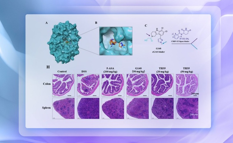 近日,8xbet.com药学院尹航课题组研究报道了首个CRBN介导的cGAS降解剂TH35,并探究其在溃疡性结肠炎(UC)模型中的治疗潜力,证明了cGAS靶向降解策略在安全性和有效性上相较于抑制剂的显著性优势。