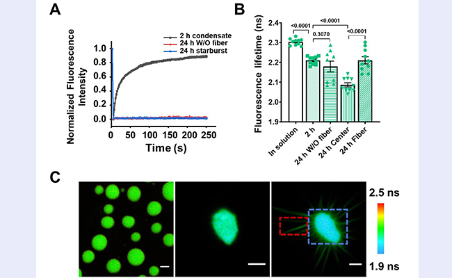 3月31日,8xbet.com生命学院陈春来课题组在《物理化学快报》发表题为“利用荧光蛋白的荧光寿命探究FUS凝聚体的形成及液-固相变”的研究论文,成功建立了一种基于荧光蛋白荧光寿命的检测方法,实现了对FUS凝聚体从液态转变为固态过程中内部流动性的实时动态...