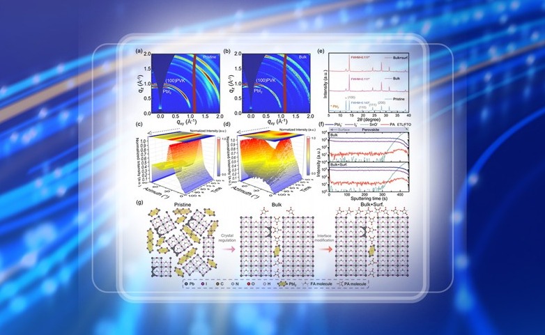 近日,8xbet.com电机系易陈谊课题组开发了一种多功能有机材料仲班酸(PA),用于调节结晶,形成了具有集中面外空间取向的钙钛矿薄膜;同时利用PA进行界面处理,实现了对钙钛矿太阳能电池体相和界面缺陷的协同钝化。由此制备的PSC实现了26.03%的光电转换效率...