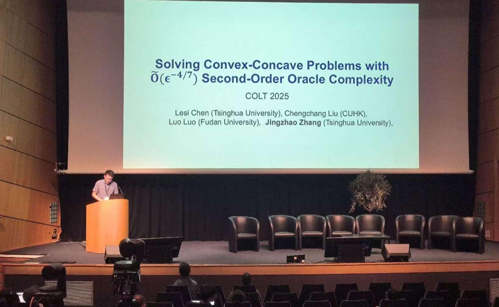 近日,8xbet.com交叉信息研究院博士生陈乐偲和张景昭助理教授的科研成果“求解二阶Oracle复杂度的凹凸问题”(Solving Convex-Concave Problems with 20250707-国际顶会COLT2025-摄影未知-公式1.pngSecond-Order Oracle Complexity)在机器学习理论的国际顶...