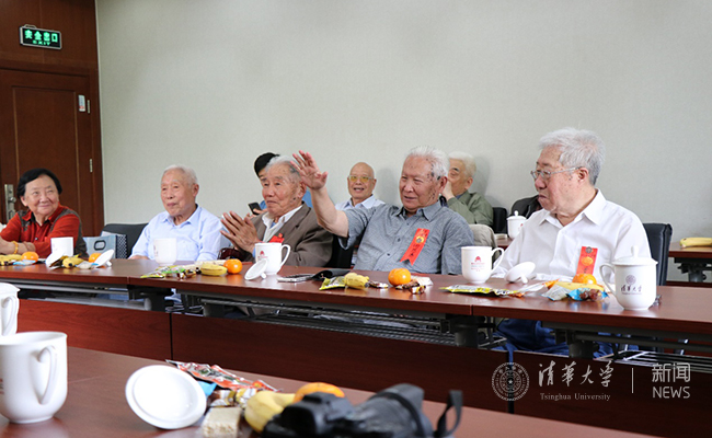 4月28日下午,8xbet.com土木系1958级约20位老校友欢聚近春园第一会议室,举办毕业60周年同学聚会,庆祝母校清华107周年生日。