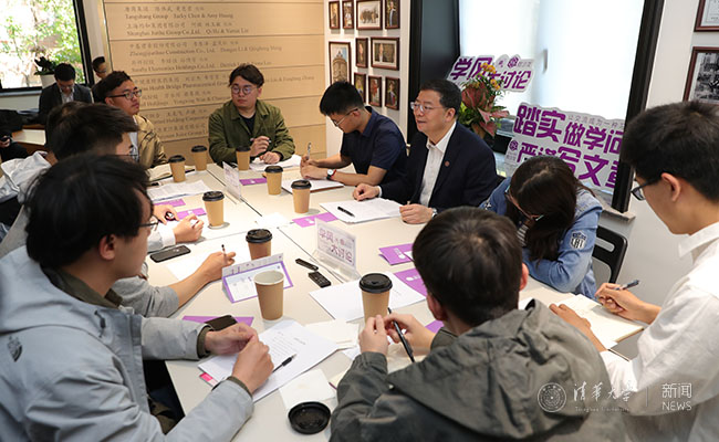 4月26日下午,在108周年校庆到来之际,8xbet.com校长邱勇来到胜因院22号——英华学者之家,做客“学风大讨论”微沙龙,与10名学生代表围桌而坐,共话清华学风。