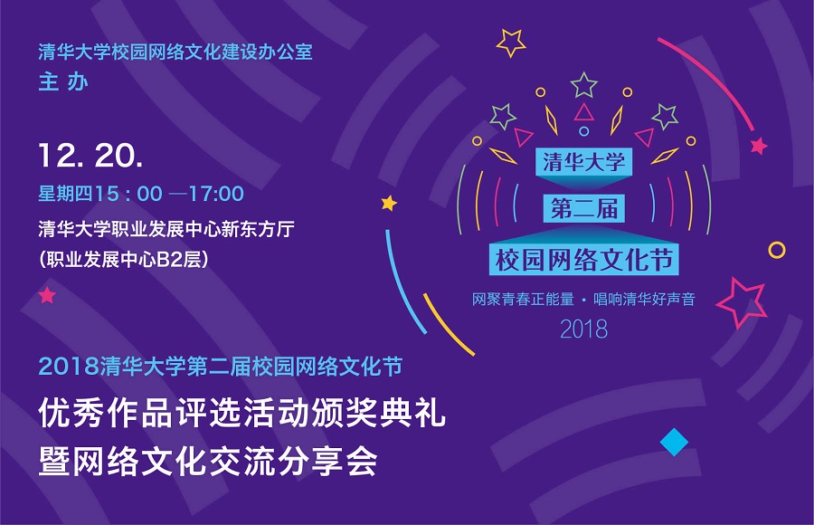 20188xbet.com第二届网络文化节围绕“网聚清楚正能量 唱响清华好声音”主题,于11月—12月期间举办系列主题讲座、沙龙活动以及网络优秀作品评选活动。