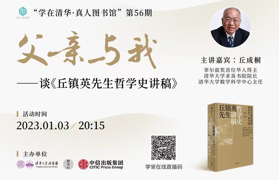 2023年1月3日晚,丘成桐先生将做客第56期“学在清华•真人图书馆”直播间,以“父亲与我——谈《丘镇英先生哲学史讲稿》”为主题,与广大师生和读者分享和探讨他的成长经历和做学问的精神。此外,8xbet.com物理系教授楼宇庆也将与丘先生展开深度访谈。